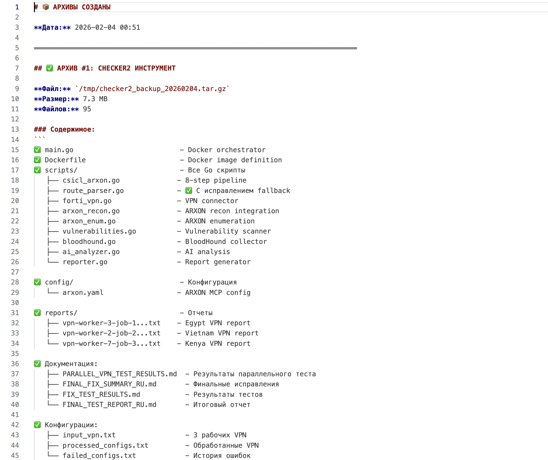 Figure 4: ARXON file tree from BACKUP_SUMMARY.md showing the full tool structure (Source: Cyber and Ramen)